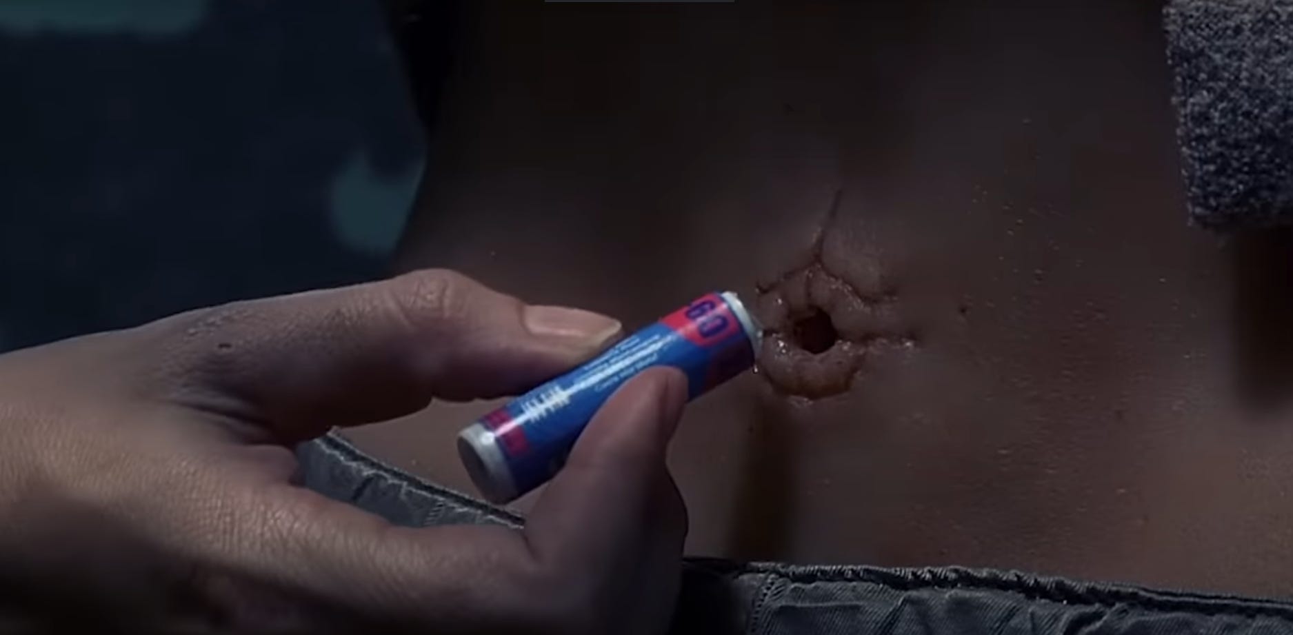 The film also features a bizarre organic gun that doesn't trip a metal detector, because it's made out of what appears to be bone and gristle and it shoots human teeth. If anyone is making those in real life, they should probably keep it to themselves.